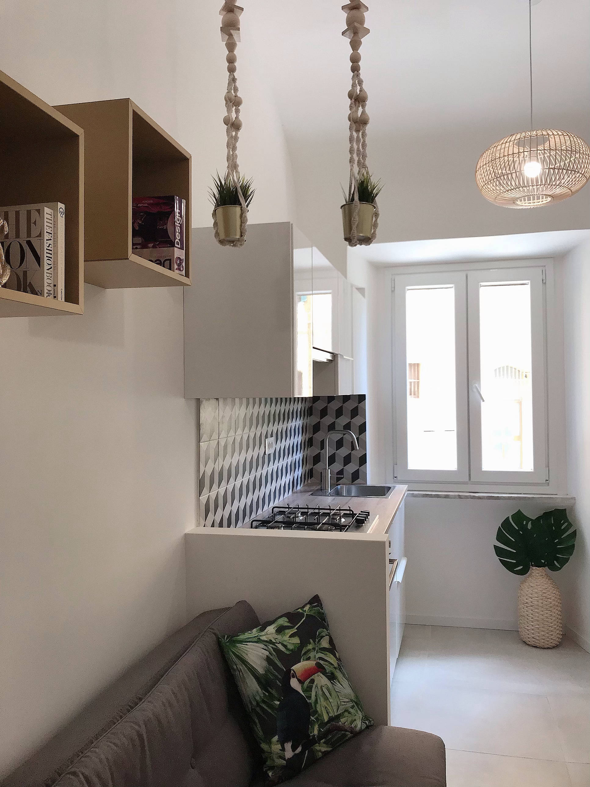 Abitazione privata sita nel noto quartiere di San Lorenzo a Roma. Il piccolo appartamento di 40 mq all’interno di una palazzina degli anni 20, non aveva subito cambiamenti o migliorie nel corso degli anni. La ristrutturazione ha completamente trasformato gli spazi, ridistrubuito equamente le metrature, e cambiato tutti i rivestimenti  ottenendo un look contemporaneo e ambienti luminosi.