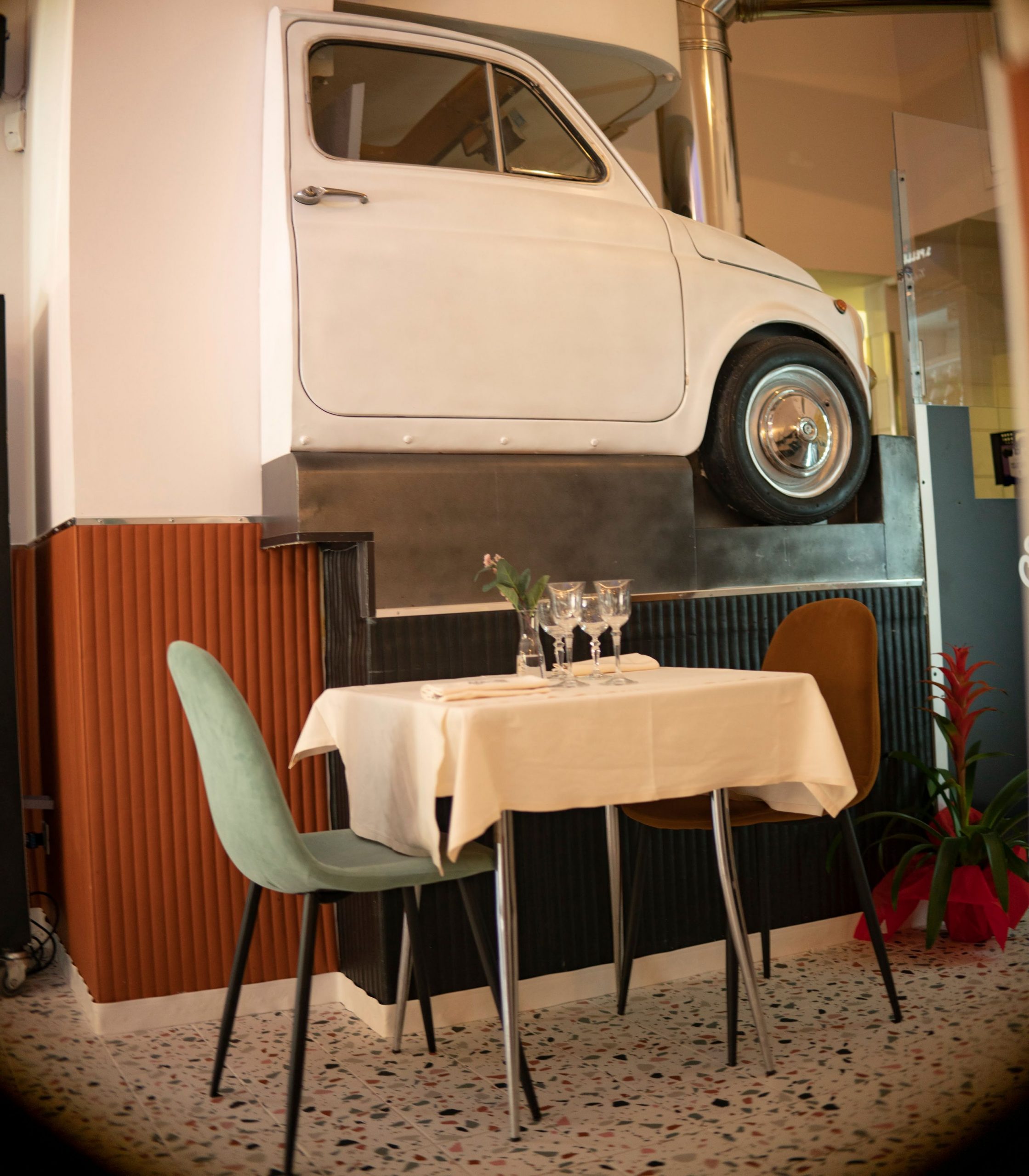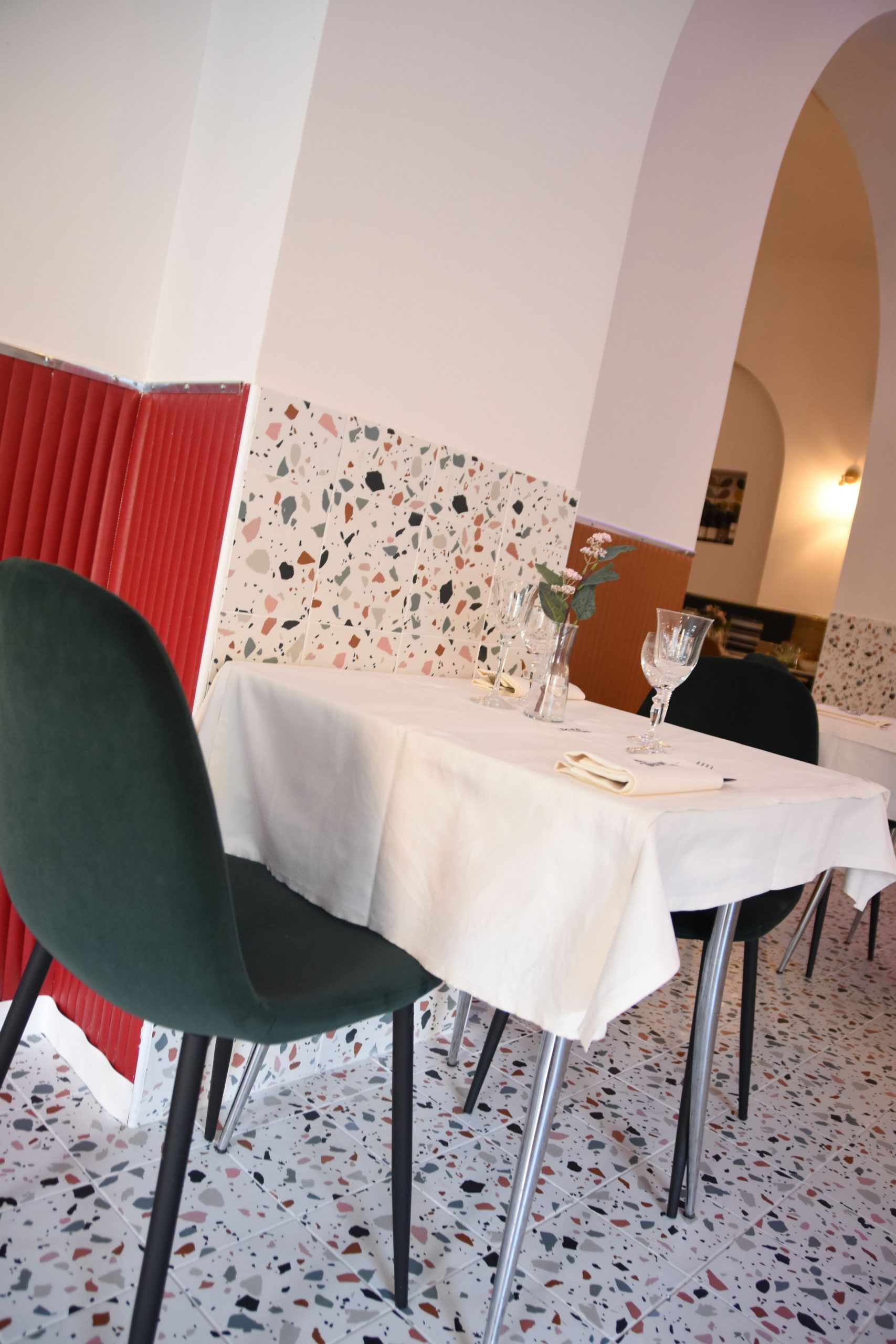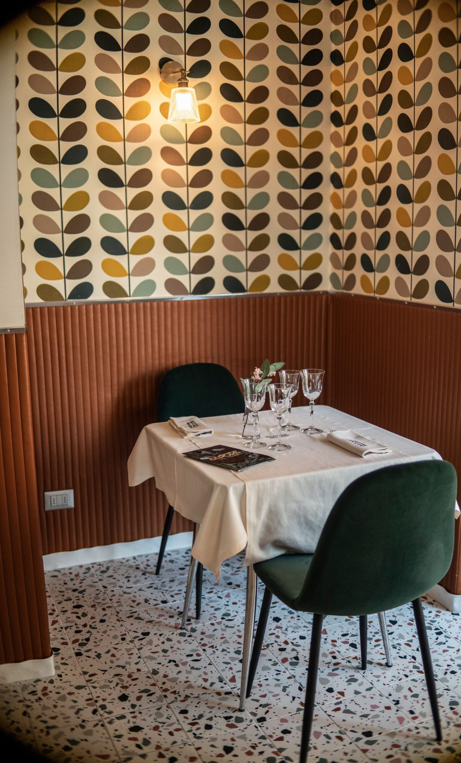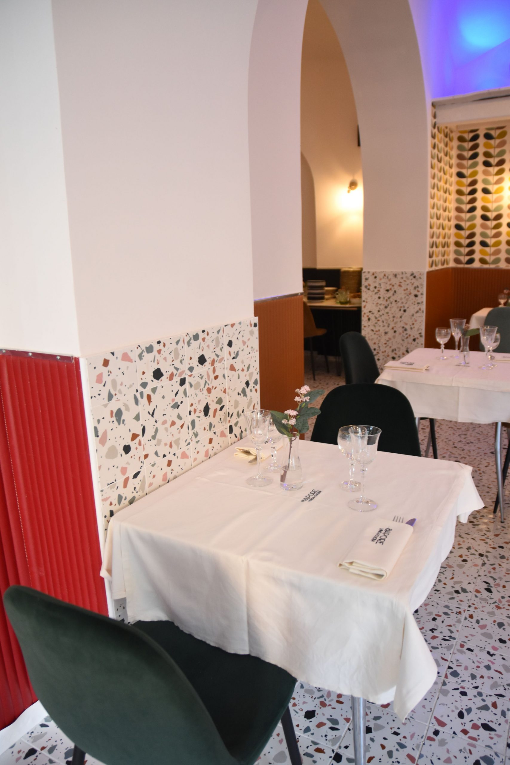 Ristrutturazione completa di un ristorante nel cuore di San Lorenzo. Le due sale sono permeate da atmosfere retrò: quella principale dai richiami anni 50, con un pavimento in graniglia rivisitato in chiave moderna e arredi originali dell’epoca, e la sala bistrot, concepita come fosse un ‘giardino sul retro’, con elementi botanici, lampade in vimini e scritte neon.