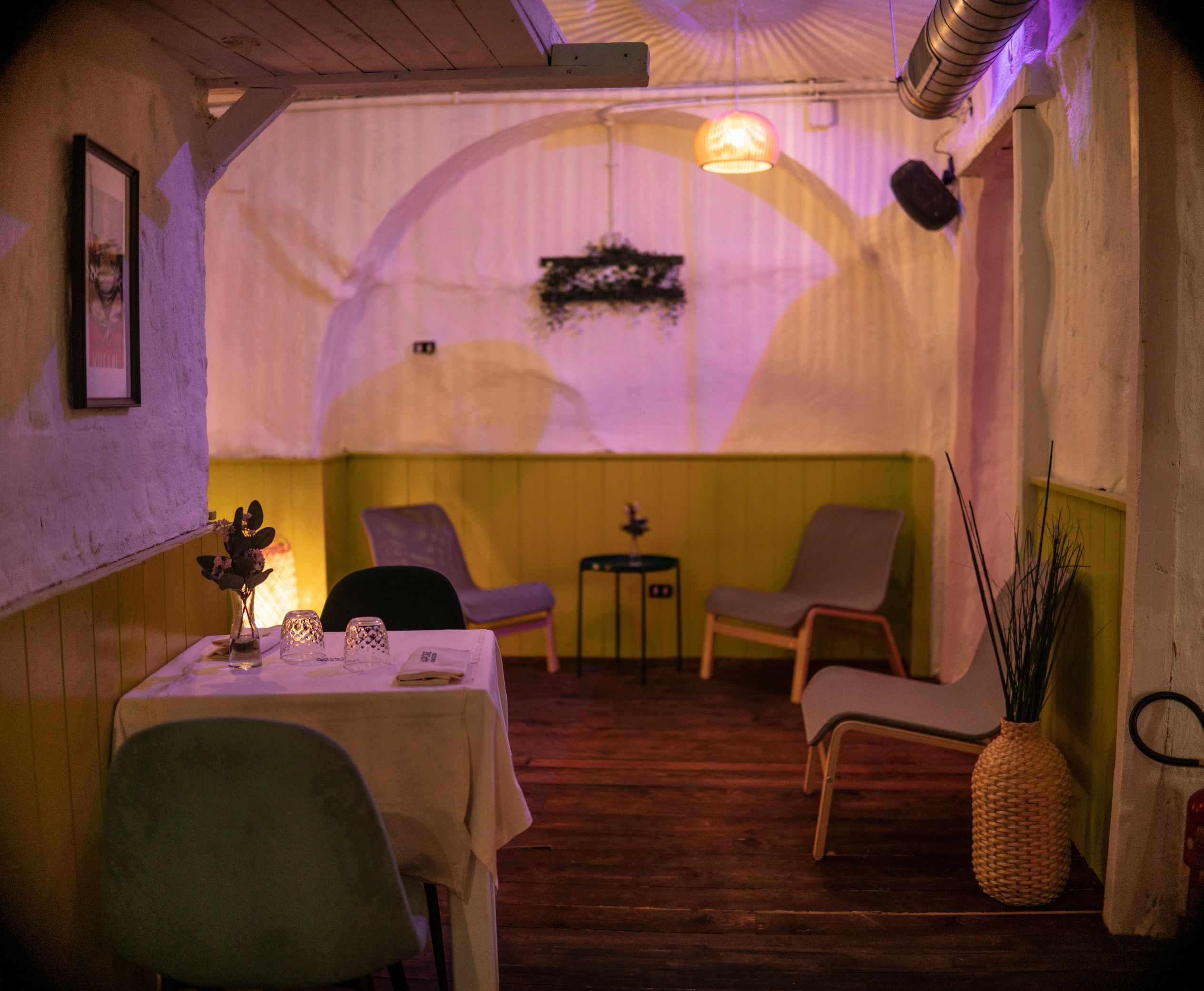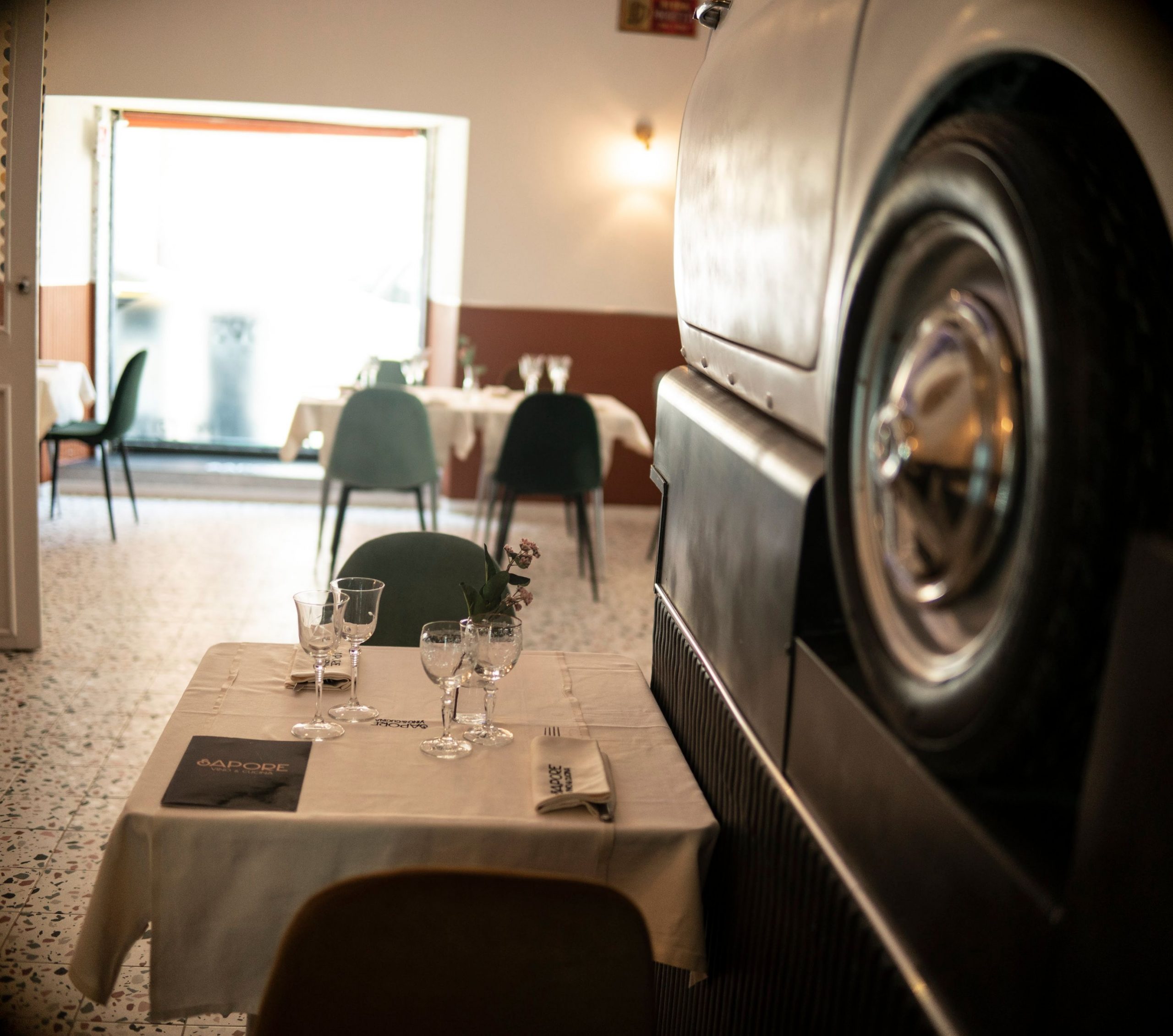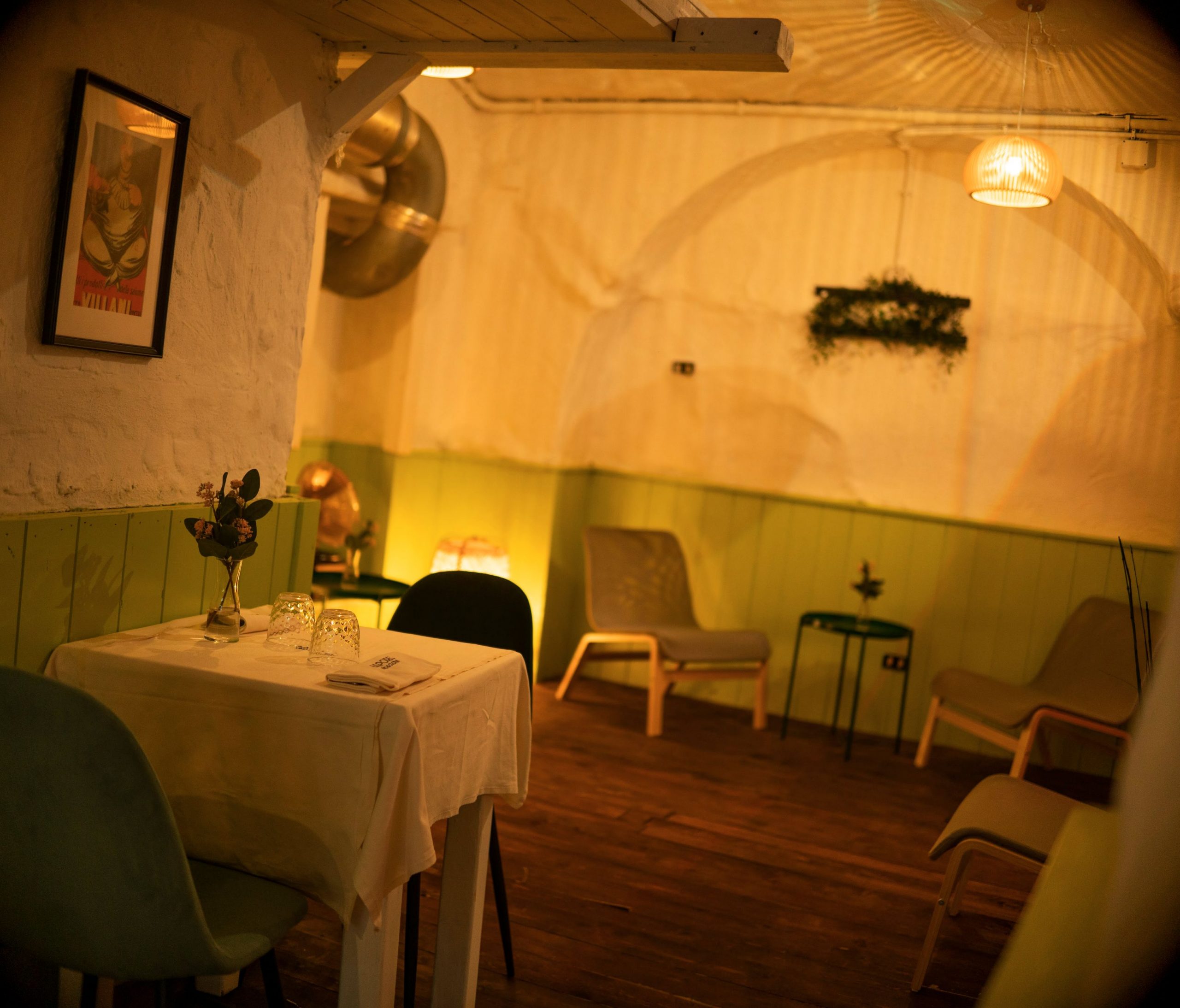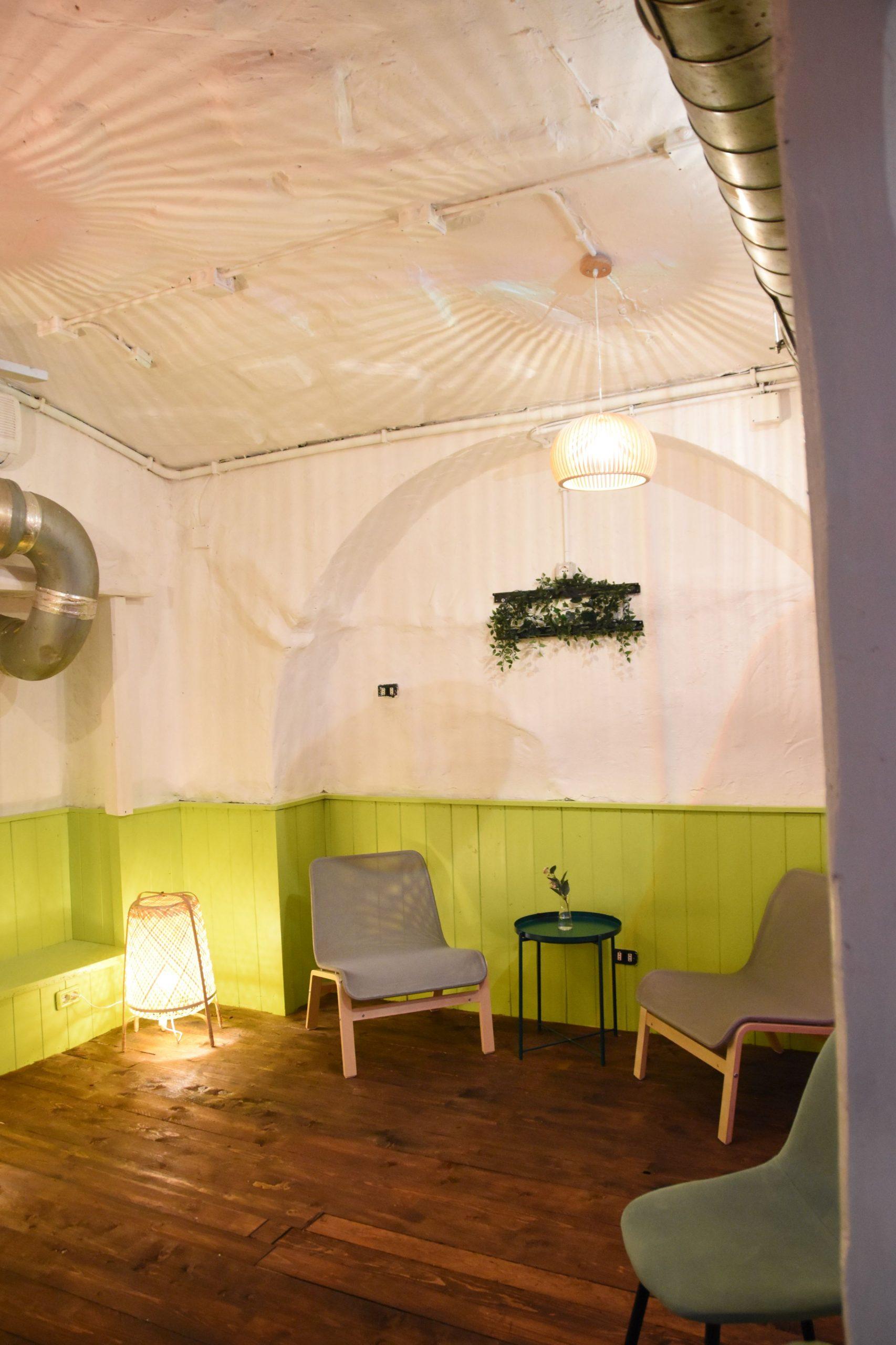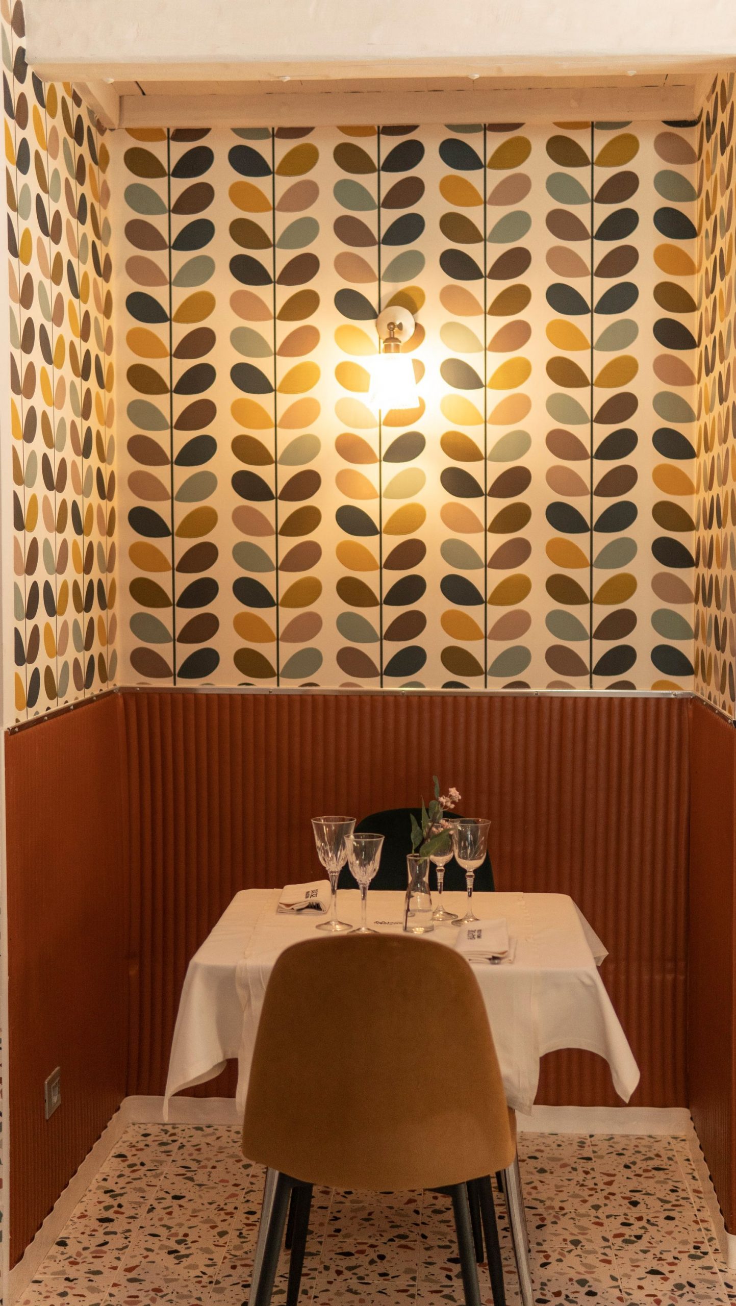 Ristrutturazione completa di un ristorante nel cuore di San Lorenzo. Le due sale sono permeate da atmosfere retrò: quella principale dai richiami anni 50, con un pavimento in graniglia rivisitato in chiave moderna e arredi originali dell’epoca, e la sala bistrot, concepita come fosse un ‘giardino sul retro’, con elementi botanici, lampade in vimini e scritte neon.